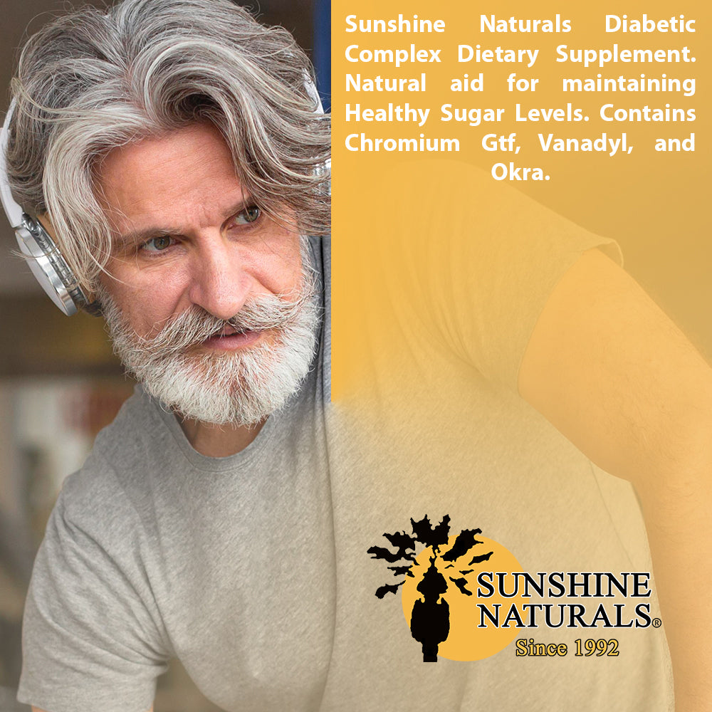 Sunshine Naturals Diabetic Complex Dietary Supplement. Natural help for maintaining Healthy Sugar Levels.